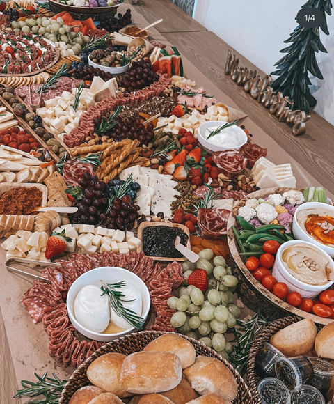 Our grazing tables are perfect for larger events to feed up to 25+ people! Designed to feed a crowd, and look good doing it. Learn more about our traditional charcuterie spreads, add-ons and the sweet/savory brunch table.